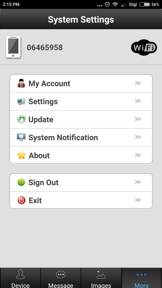 - More (My Account, Settings, Update, System Notification, About, Sing Out & Exit)